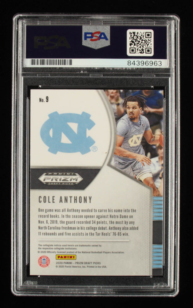 Cole Anthony Signed 2020-21 Panini Prizm Draft Picks #9 RC (PSA Encapsulated) - Rookie Card