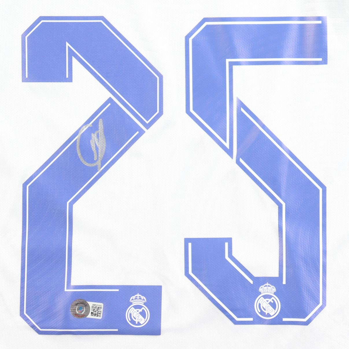 Adidas jersey with printed and sewn on, size XL. Hand-signed by Eduardo Camavinga (Real Madrid Football Club).