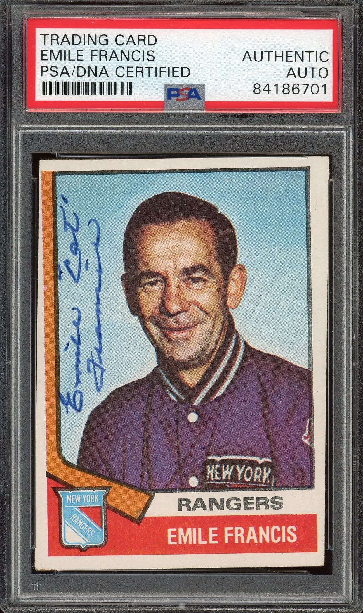 Emile “Cat” Francis New York Rangers Signed 1974 Topps Hockey Card #9.