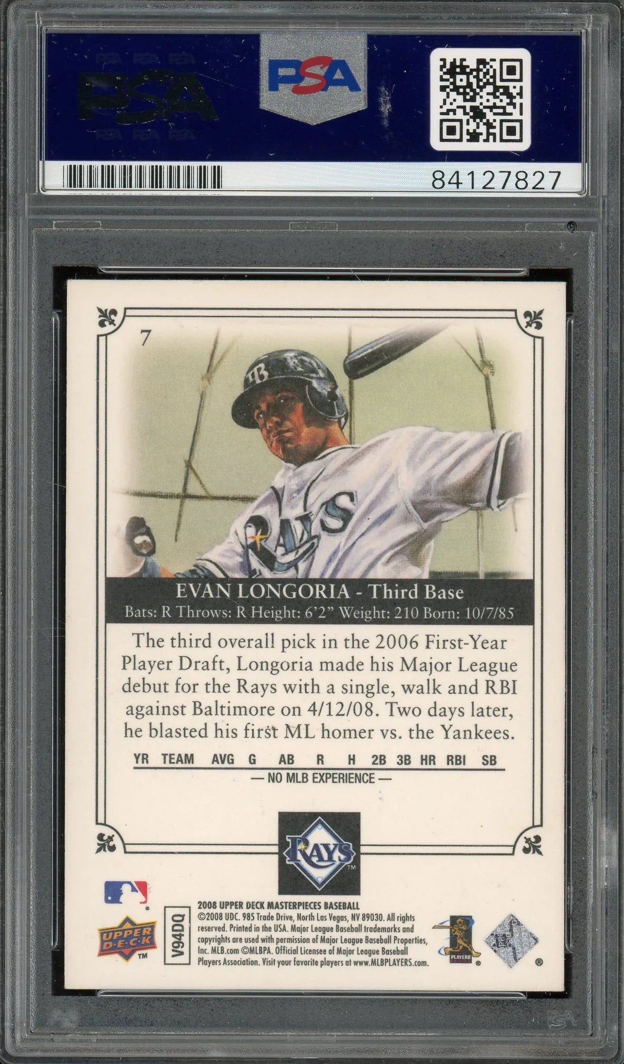 Evan Longoria Signed 2008 UD Masterpieces #7 RC (PSA) - Rookie Card