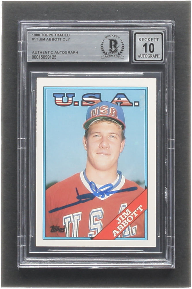 Jim Abbott Signed 1988 Topps Traded #1T OLY XRC (BGS | Autograph Graded BGS 10) - Rookie Card