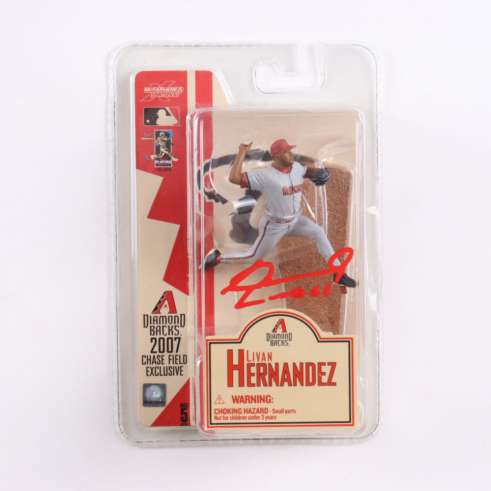 MacFarlane Toys MacFarlane's Sports Picks action figure measures approximately 3" in height and has been hand-signed by Livan Hernandez (Arizona Diamondbacks). Comes in original factory sealed packaging as shown.
