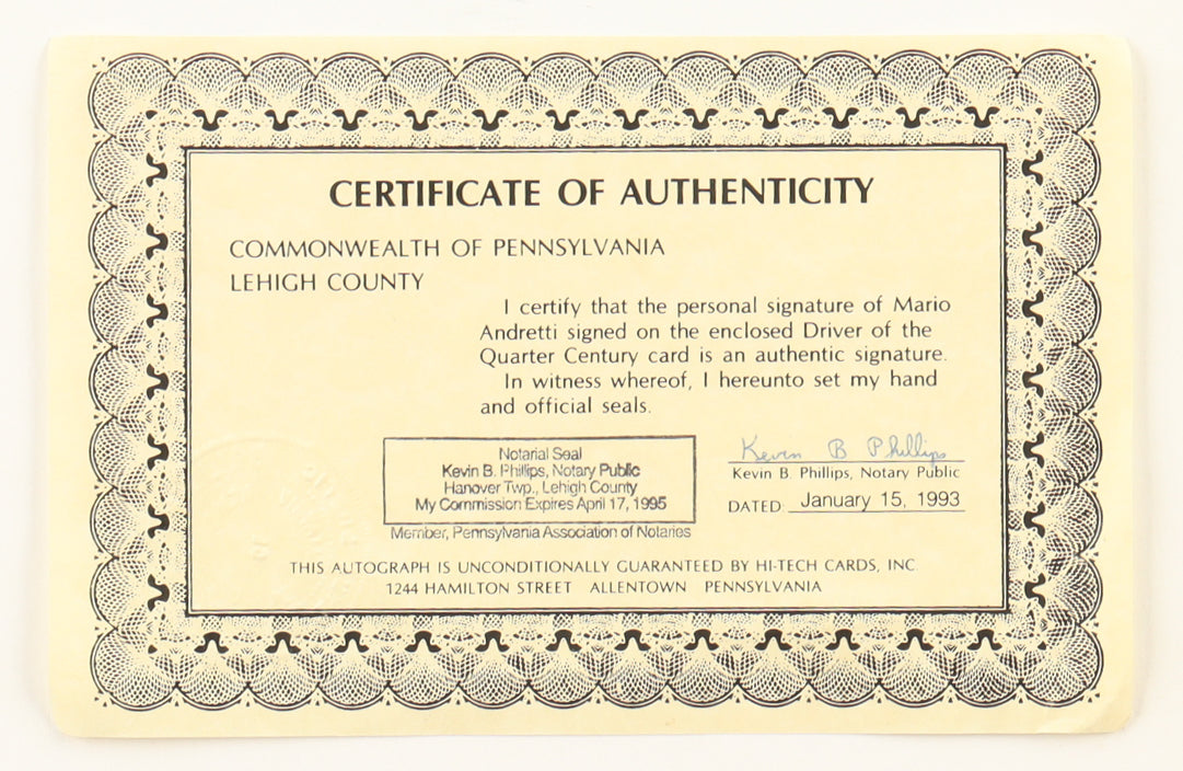 Mario Andretti Signed LE Hi-Tech Driver of the Quarter Century #52 With Display Tin & (52) Card Set (Beckett)