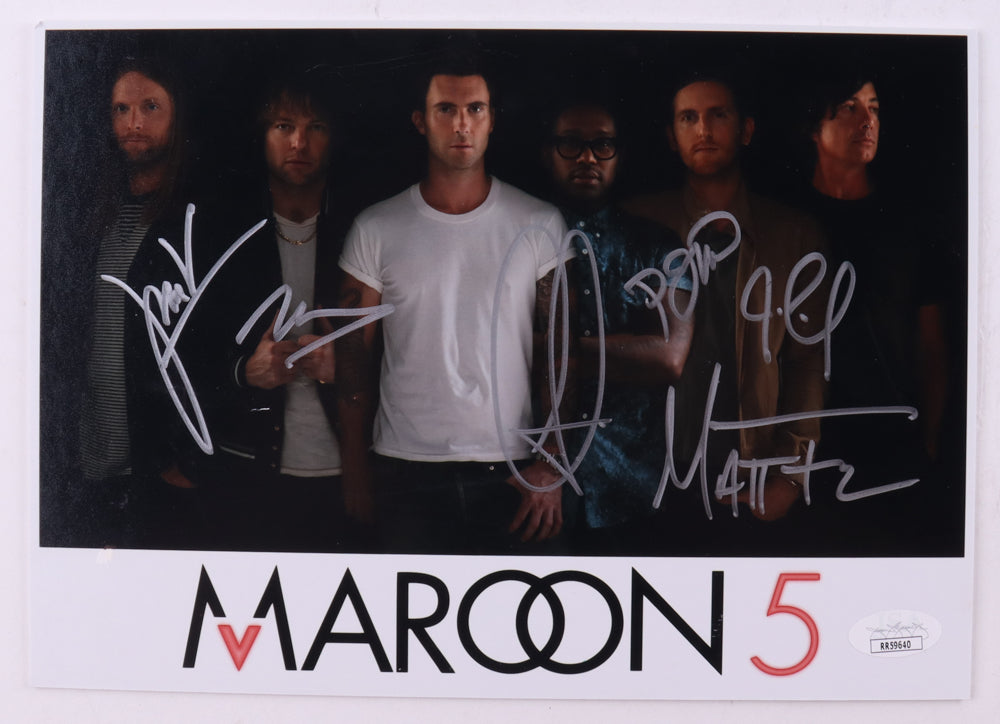 Photo measures 7" x 10" in size. Hand-signed by Adam Levine, Jesse Carmichael, James Valentine, PJ Morton, Matt Flynn and Sam Farrar.