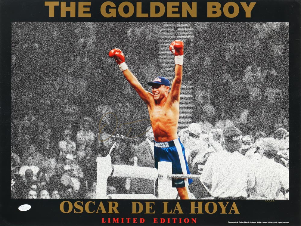 Photos measures 18" x 24" in size and has been hand-signed by Oscar De La Hoya.