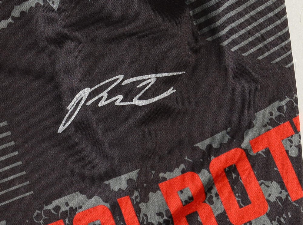 Custom fight shorts have been hand-signed by Payton Talbott (UFC).