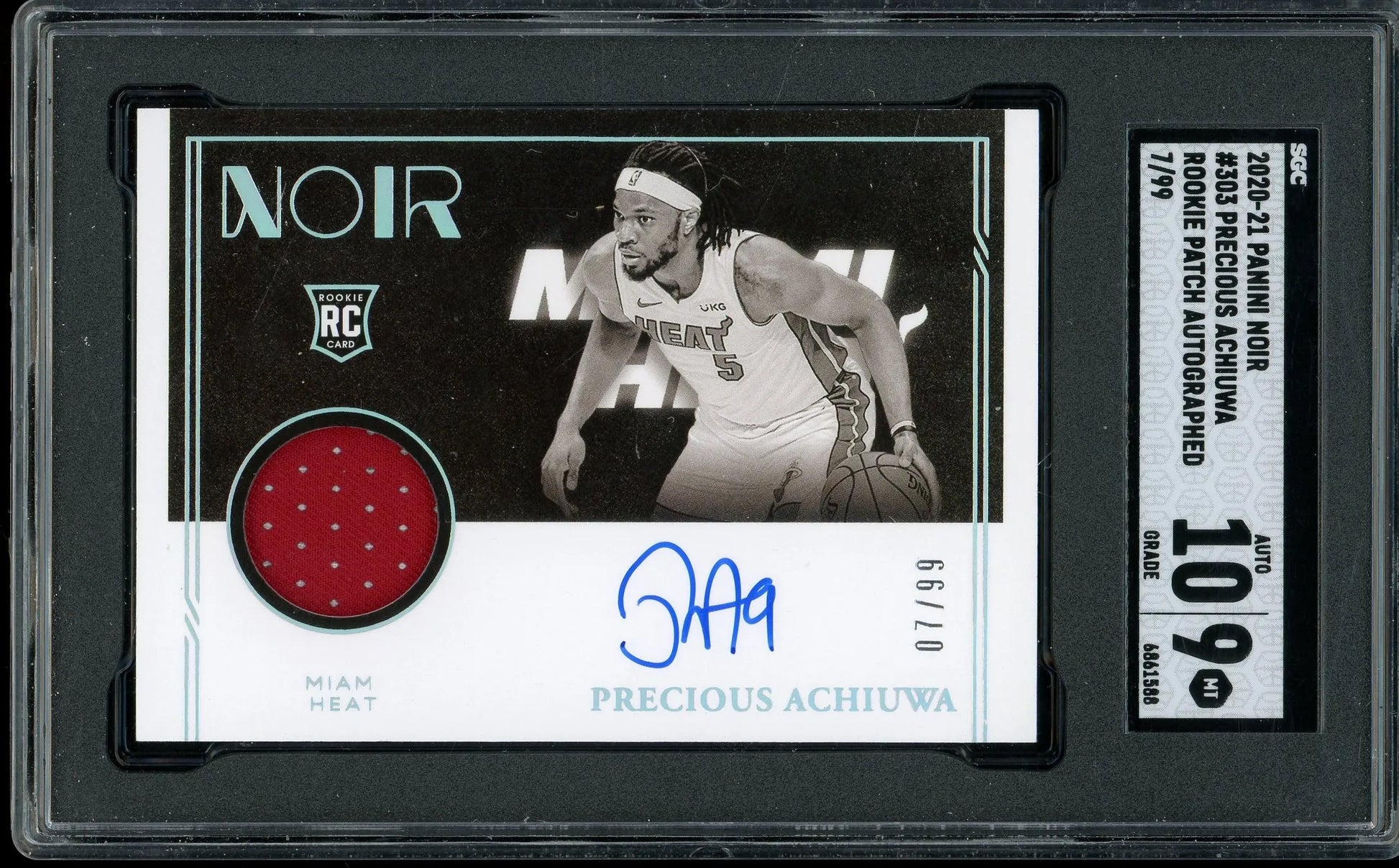 Precious Achiuwa 2020 Panini Noir RPA Rookie Jersey Relic #303 RC– #7 Of 99!– Graded Mint 9 (SGC) With Graded 10 Autograph - Rookie Card