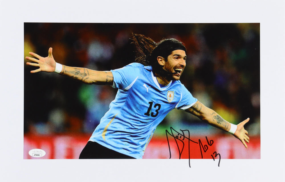 Photo measures 11" x 17" in size and has been hand-signed by Sebastian Abreu (Uruguay National Football Team)